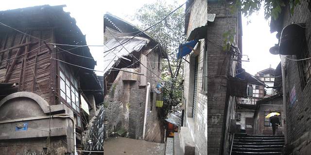 重庆是座山城,几乎所有的建筑都是倚山势而建,尤其是重庆的老建筑吊脚楼,十八梯是重庆保留很好的一处老建筑群,而我最爱的也正是这种原汁原味儿市井建筑,低低矮矮的房子从山下直到山上,一条石阶也从山上蜿蜒到山下,尤其是在下雨的时候来这样的地方,更会有一种地到重庆的味道.就现在而言,这样的房屋,这样的街道,生活起来非常不舒服了,路面大都欠于修缮,走起来很泥泞,但是当地的人们却仍熙熙攘攘的安乐其中,淳朴而安逸.一碗麻辣小面,或是一碗汤圆,低矮的屋檐下看几个小时的公共录像,亦是一种不曾体会过的快乐.