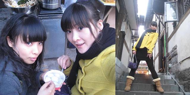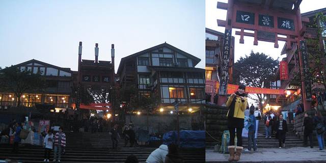 今天重庆的天气简直太好了,下午的时候太阳大大的,给足了面子,近下午四点的时候天还很亮,于是我们决定按照原计划去往下一站,重庆著名的磁器口,一条古香古色保留着重庆老建筑风貌的街道,其实也和大多城市的商业古街差不太多了,基本上都被开发了,完完全全是店铺,商铺,工艺品店,但是磁器口较之其他商业老街不同的就是吃,这里也称作重庆著名的辣子鸡一条街,鸡杂,辣子鸡,都是非常具有重庆特色的饮食,嘻嘻,我们当然不能错过,和丫丫两个人点了一小份鸡杂,但是上来却是满满一大锅,还在沸腾着,超级壮观,也超级好吃,还点了重庆著名的辣子鸡,直到我们再也吃不下任何食物.