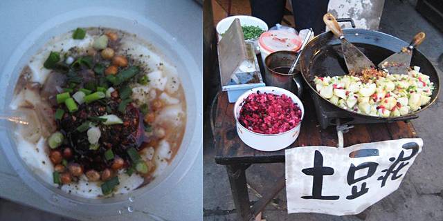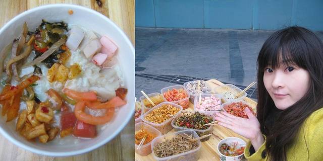 在较长口走了走转了转就离开了,辗转去了临江门,也不知是个什么地方,从远处看有一座仿古的建筑,走进才发现原来昨天夜里我到过这里,也并不是什么仿古建筑,只是个铺面而已.离开临江门的时候,突然又被一个街边的小摊位吸引住了,只不过是个卖粥的小摊位,粥也并没有什么特色,倒是那一大桌各不相同的泡菜着实吸引了我的注意,足有八九种,花花绿绿的,并且各不相同,这些泡菜都是自家腌制的,所以每家做出来的口味也不一样.于是坐下,要了碗白粥,配着不同的泡菜吃下,不得不称赞,真是好味道,尤其是喜欢土豆泡菜,土豆软软的,和着辣椒的味道,极致了.