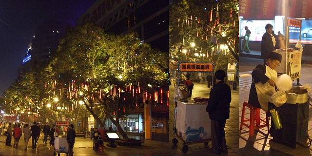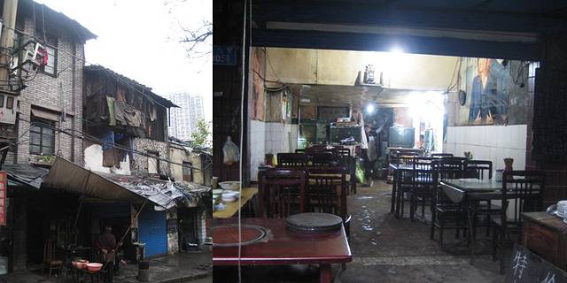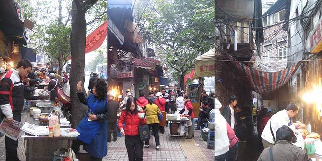 凭着感觉,嗅着味道,大街小巷信步走着,居然从解放别一直走到了湖广会馆,从这条街道穿进去,又从另外一条小街穿出来,我不知道是不是该管这些叫做胡同还是弄堂,总以为'胡同'这个词语应该用在北方,尽管这一条小街很窄很长,我总也习惯称之为'街'.