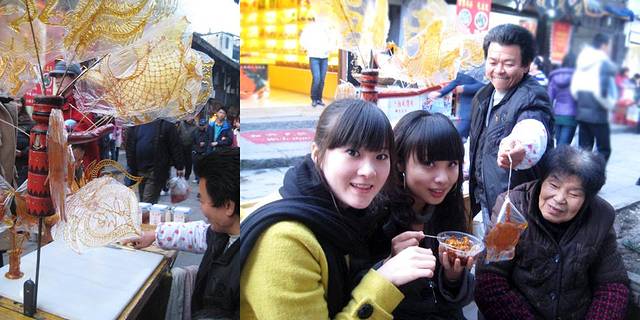 街边的生意很兴隆,卖各种货物,鲜鱼和蔬菜,辣椒和姜蒜,水果和小吃,水仙和腊梅,我是之后才知道这一种黄色并且很香的小花是腊梅,开始我一直纳闷冬天的重庆怎么还会开迎春花呢?呵呵.