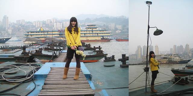 静静的码头,长江的水声,货轮的气鸣声,一并我大声的歌唱,一路上不知疲惫更不知厌烦的在行走.天空阴霾得美丽,厚重的云朵像是老天特别赐予这座城市的礼物,一切都如此的完美。