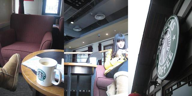 连续两顿早餐,是该好好走走路了,于是沿着街边一直溜达着,就又到了洪崖洞,老公最爱的星巴克,要了一杯咖啡靠窗坐下,上上网,发发呆,幻想着老公曾经常坐在哪个位子上,从窗口也会看到同样的风景吗?也许会的吧,呵呵.