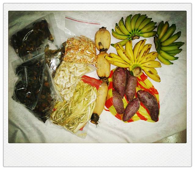 海鲜;蔬果:皇帝蕉、杨桃、木瓜、地瓜、莲藕;干货:虾米、蚝干、鱼干等