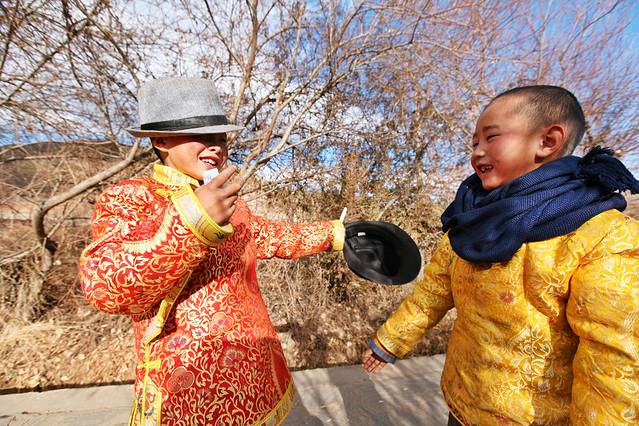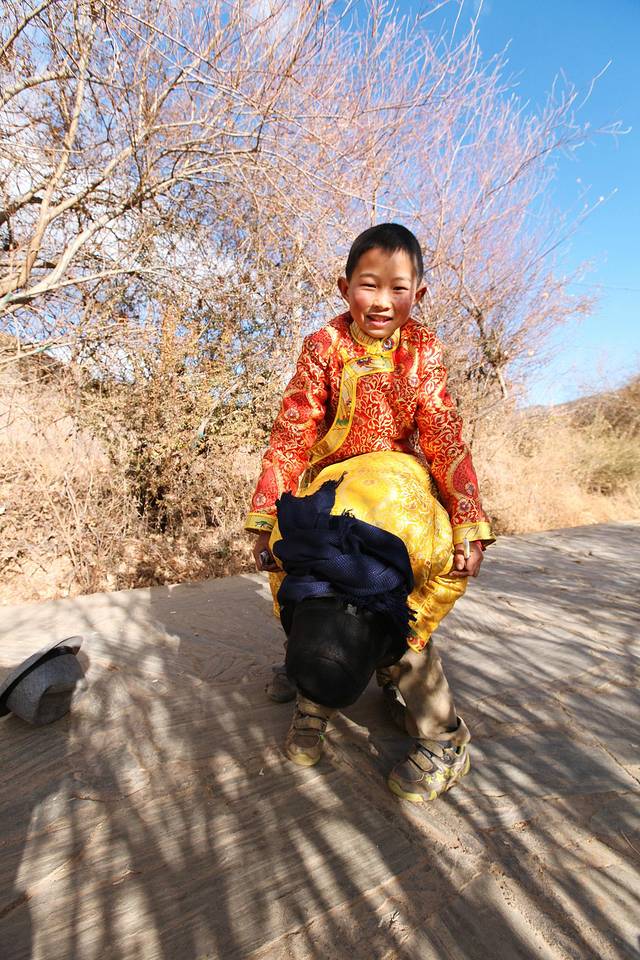 聊到我都快来不及在天黑前骑车赶回客栈了,最后让他们俩站好让我给拍张合影,结果五岁小朋友一直极不配合。