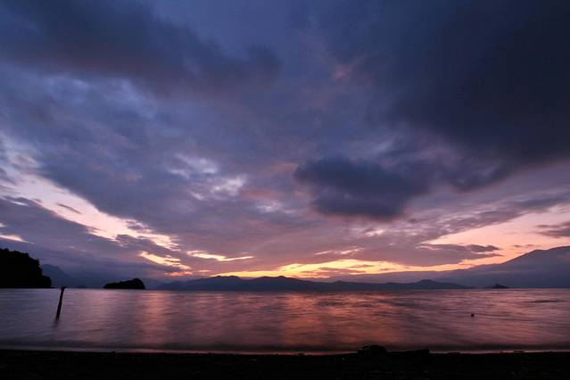 七点半穿过院子走到湖边的时候,天色还是甚为昏暗。昨夜还星空万里,这会儿却被厚厚的云层密布。远方山峦处略有一点点的光亮,姑且称之为朝霞吧。在湖边晃了许久,才陆续有其他住客出来,一边遗憾地感慨,哎哟今天看不到日出了。我开始不无扫兴地在心里盘算今晚再在尼塞村住一晚的念头,一边和男人打电话报平安顺带埋怨下天气。正在此时,却突见云层中渐渐显出红光,把乌云映照地通红。