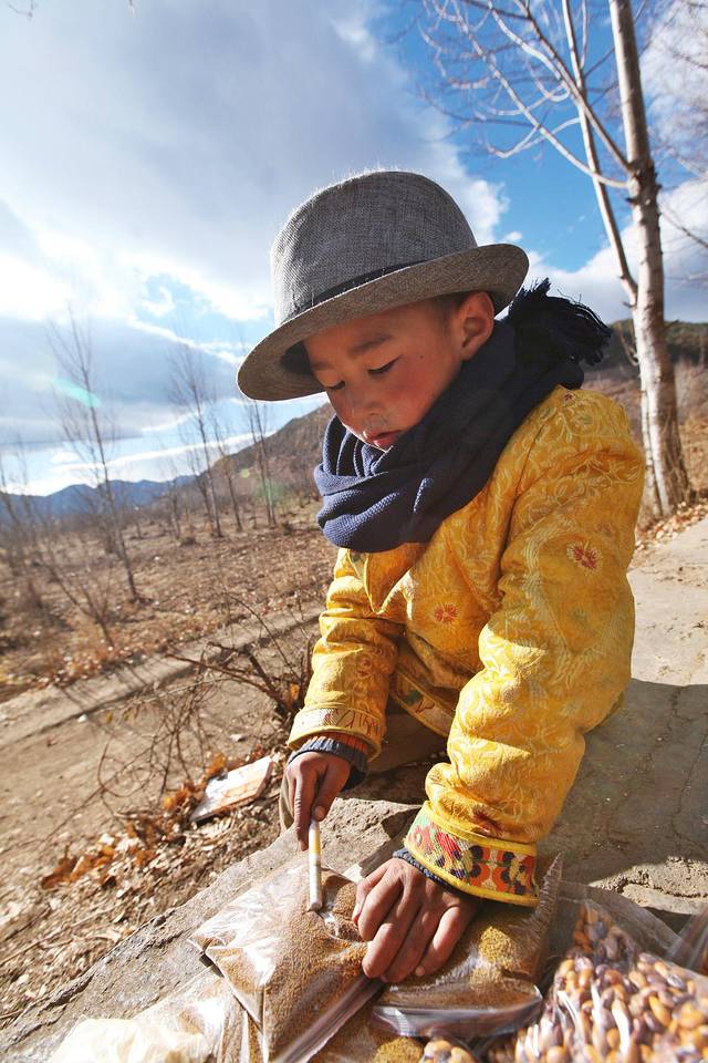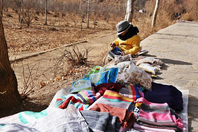 那一条路上有很多小盆有摆摊在卖苹果干之类的小食,当我看到这个特别年幼的小男孩儿的时候我实在忍不住停下来跟他问他几岁。小孩儿带着帽子低着头轻声说,你不买东西我不回答。那股子委屈劲儿让人觉得又可怜又可爱,于是我承诺他给他两块钱让我跟我聊天。