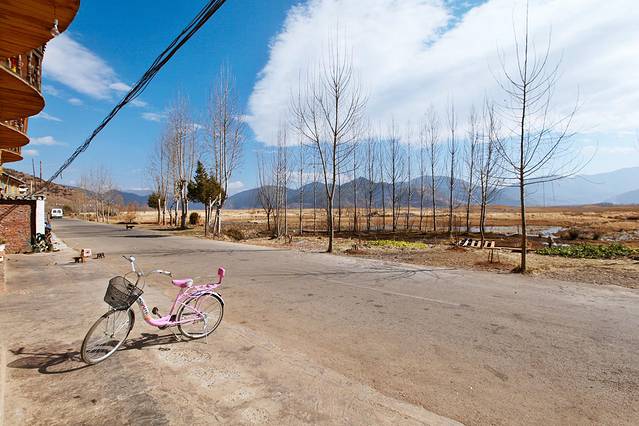 尔车给我安排了个二楼的观景大床房,这就是从阳台看到的景~尔车家位于博树村,是一个不算客栈集中的村庄,如果要租借自行车或者吃饭的话,要往湖方向走大约一刻钟就可以到五支洛村。我给自己下午的安排是借辆车去走婚桥转转。