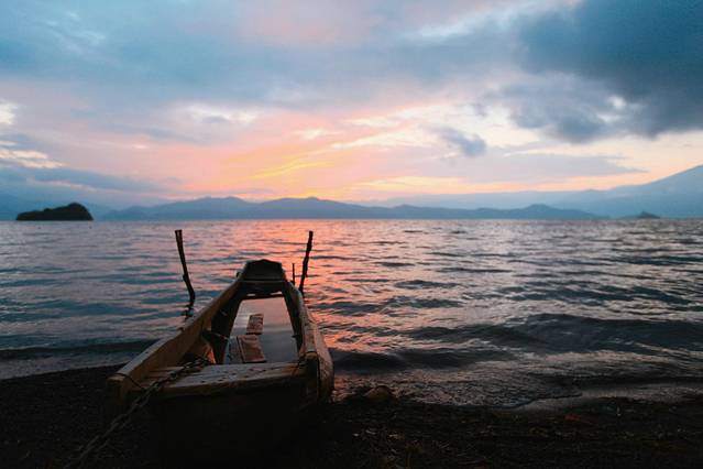 当我卡进至西昌的那辆加班车的最后面角落里那个位置的时候,我还沉浸在尔车最后那句话所带给我的难以名状的情绪中,甚至觉得坐在周边那些住在泸沽湖镇上客栈的游人们的搭讪,都耿耿于怀迁怒地不想搭理。即便昨晚有那么值得分享的经历。