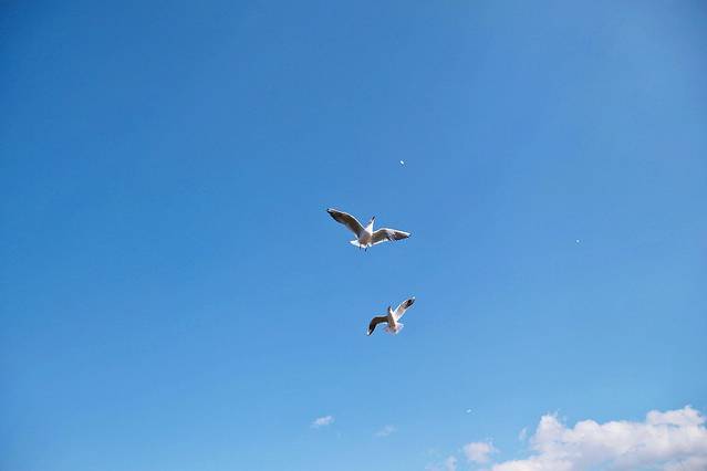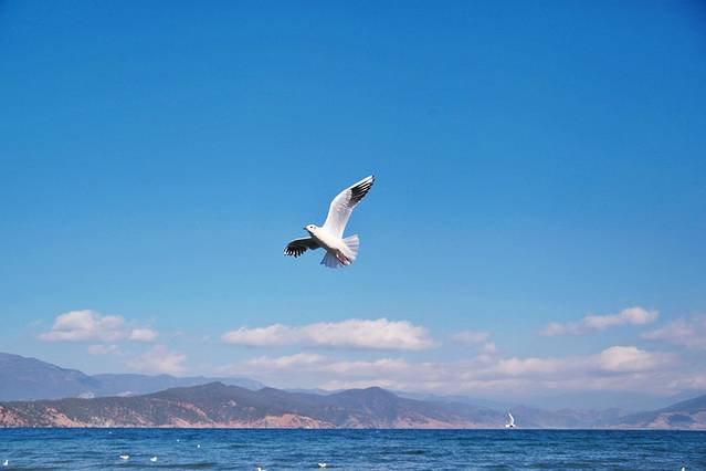 在摩梭大叔哨音协同面包屑的召唤下,海鸥开始一只两只三只乃至成群结队地飞舞而来。于是开始一顿快门不要钱捞到镜头里都是菜的噼里啪啦打鸟行动。在完全无人的草滩自拍不用害怕相机被偷,会偷相机的大概就只剩下海鸥了吧,噗