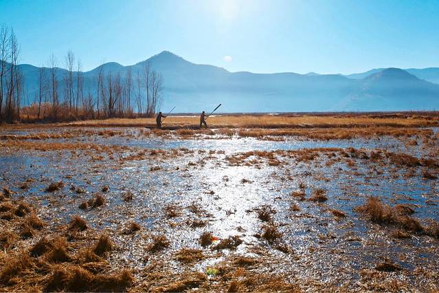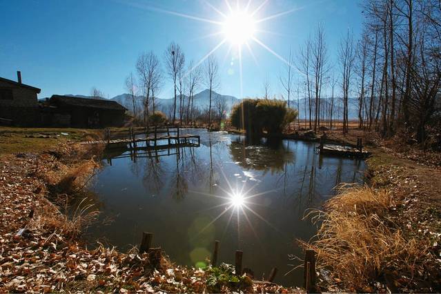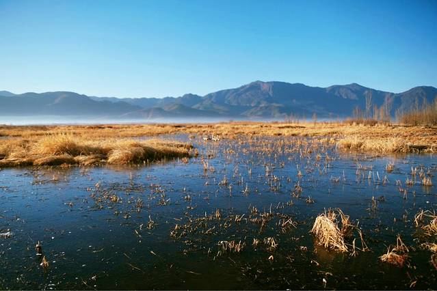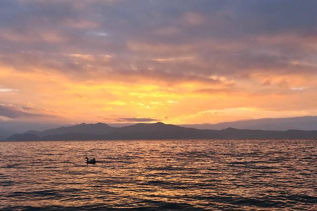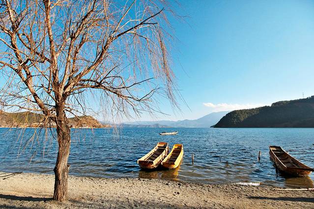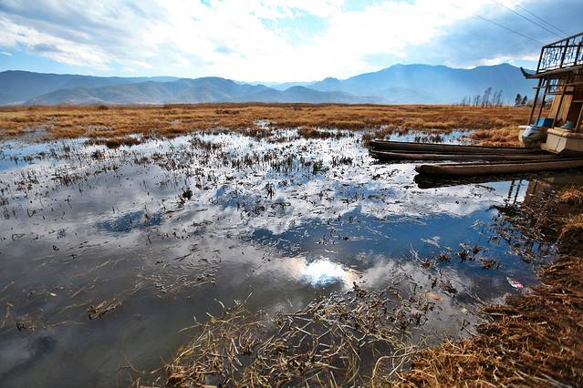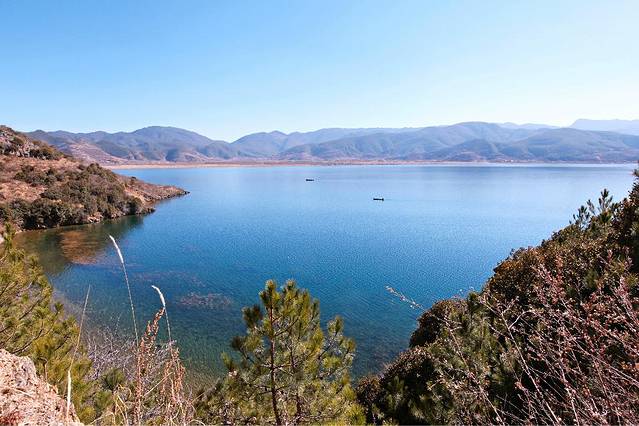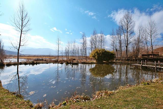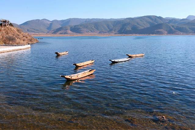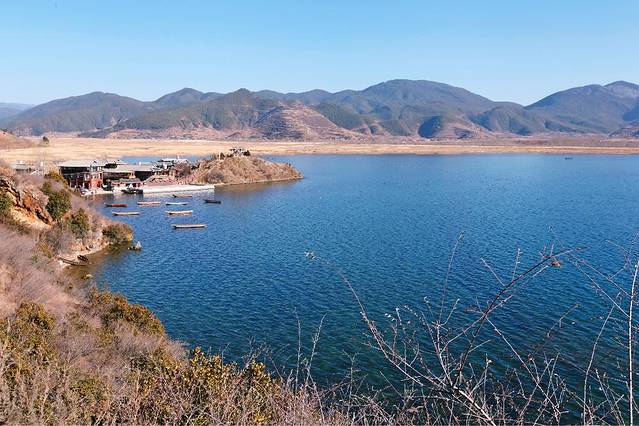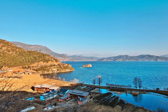 当日已进入元旦长假期间,紫鸢尾当晚已无空房。我虽也想到里格观景台看一下全景,却又不愿错过第二天草海那里的清晨,一番心里斗争之后决心还是当天即环湖去四川那边,并与海角七号尔车联系再多订了当晚的房间。