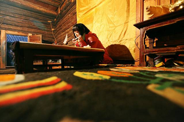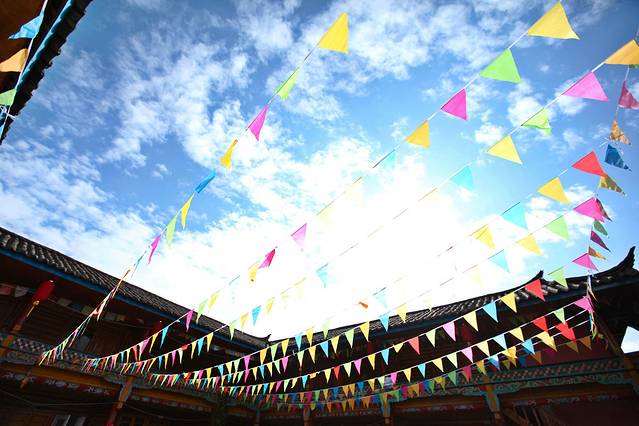 然后就在此刻,同行闺蜜突然接到家里的电话,因为一些不可抗拒的突发状况而必须此时就即可返回上海。我犹如晴天霹雳般却又强作坚强地一边安慰她,一边帮她出谋划策,最后终于在司机大叔的帮助下找到辆小巴即刻返还丽江在搭机取道杭州回上海。与此同时,从来没有试过独自旅行的我正在忐忑地不断说服和鼓励自己面对这样一个局面,脑海里迅速地想象一个人走整个行程可能遭遇的各种事情以便做足心理准备,匆匆地扒了几口饭,几乎是魂不守舍地坐回大巴上。