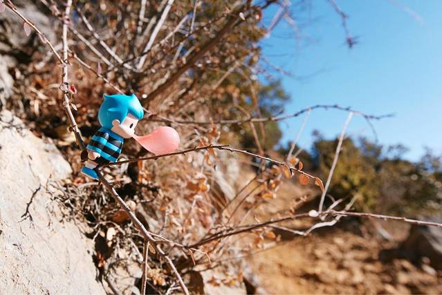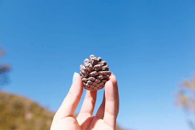 旦下定了返回的决心,一下子就轻松了起来,回去的路上,捡松果各种玩起来。