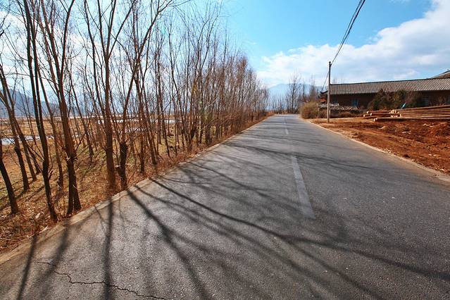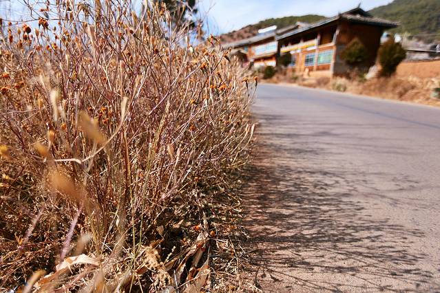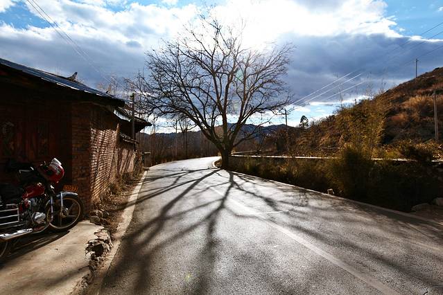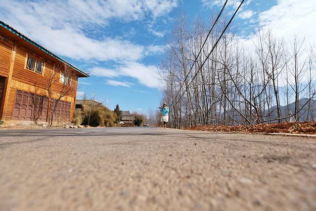 于是先行去五支洛吃午饭,一路上几乎没什么人,虽然尔车言之凿凿地说只有一刻钟的路程,我还是在眼看着前方一个又一个转弯,总也看不到传说中的村子时,忍不住沿途又问了好几个村民多次确认。看到无人的大马路就好想奔一个,结果后面的车突然出现变得像逃亡了 噗
