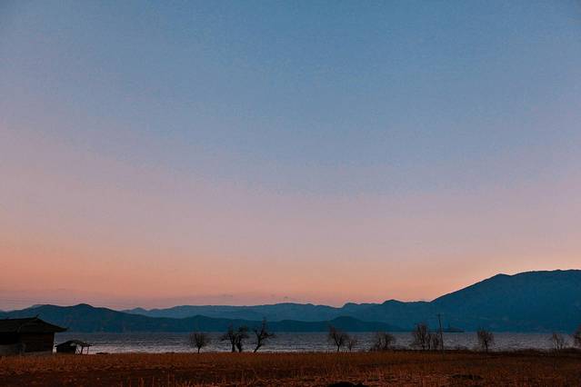 慢慢走回客栈,回头看见太阳公公仍然执著地探了最后一下脑袋,终于恋恋不舍地收起了光芒。
