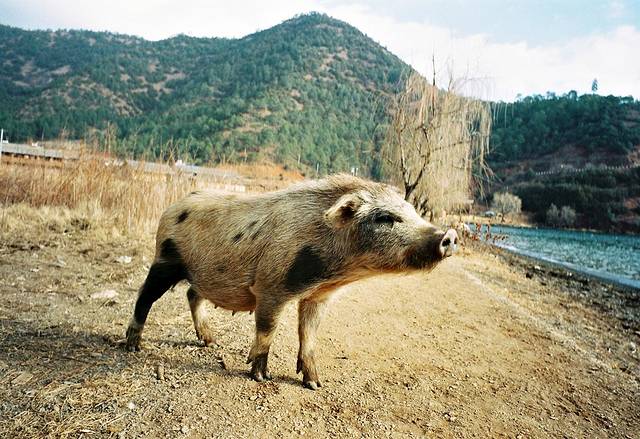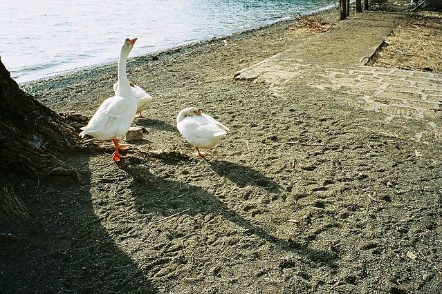 又去村里拍了些胶片,大白鹅、骡、猪皆放养在湖边,和谐而自在。
