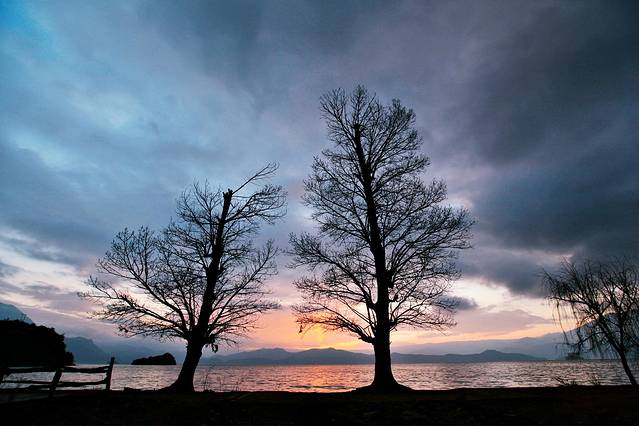 一早天还完全没有亮,就披星戴月地在客栈老板的引领下穿过整个大研古镇到大水车旁边的停车场,找到事先由客栈定好的大巴,大巴在七点多还算准时地出发,一路上如大家一样地途径了丽宁十八湾等景点,在中午十二点抵达宁蒗县城午饭。截至此时,我自己也都一直以为这不过是一次稀松平常的旅行,再需要一个多小时的时间就将要到达目的地泸沽湖边,一切都按预计中按部就班地进行。