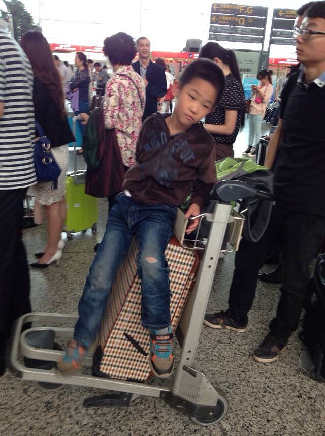 离开第一家入住的酒店,因为地方比较偏,所以要转移到方便坐车去机场的酒店。儿子积极帮忙拿东西背行李╭(╯3╰)╮