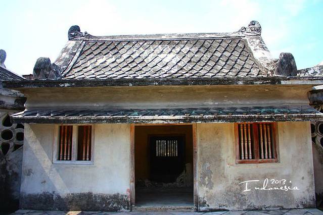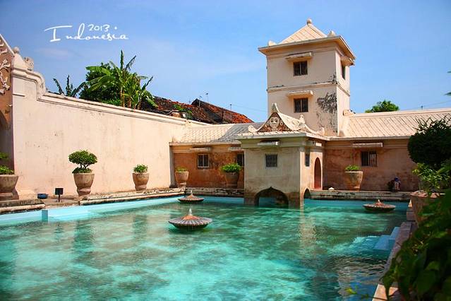 据说日惹水宫是一位葡萄牙设计师在17世纪设计建造的。原本是王族成员沐浴戏水的地方。苏丹在这里可以站在窗后,看女人戏水,看见中意的女孩,就把茉莉花朵丢在她身上,这个女孩就和苏丹到隔壁的小池子里单独戏水。小水池里还放了药物,有利于健康和提高情欲。还据说苏丹王为了让这所快乐之园成为永远的秘密,最终处死了这位建筑师。