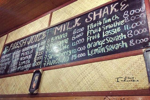 一落座,傻眼了,菜单一个字都看不懂啊!!!!好在老板会说简单的英语。两个英语都不咋地的非英语国家人士,用蹩脚的英语,居然基本弄明白了。日惹比较出名的美食就是炸鸡。