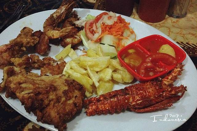晚饭就在库塔海滩旁边找了个大排档吃海鲜烧烤。