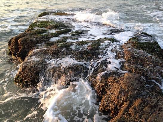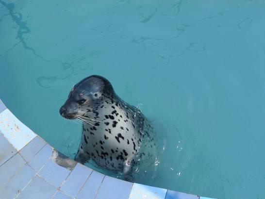 看完九丈崖就顺着走到月牙湾公园了,一步入月牙湾公园,就踏上了一条长长的用滩上鹅卵石铺就的石毯,我们发现石毯的选料十分的圆润,而且晶莹如珠,造型色彩相间,凹凸不平,我们还脱了鞋子赤脚在上面走路呢,刚开始感觉有点痛,但是后来感觉很舒服,就像是做了一个足底按摩似得。我们还记得昨天渔家乐老板说。在月牙湾最有情致的就是月牙湾的球石,可以说是一个珠光宝气的球石世界,洁白的如美玉,晶莹的赛琥珀,无论你在什么地方捧起,都会一颗也舍不得丢下。这里是确实有很多很好看的小石头,就是老板说的球石,我们捡了很多很好看的打算带回去,后来发现,每捡一颗我们都想带回去,可是因为我们还要去其他的很多地方去,没法带那么多,所以就只带了几个我们最喜欢的留下来做纪念了,心里还是觉得好遗憾的。我们还在这里看到了很可爱的小海豹表演,但是由于我们的时间比较有限,所以并没有看完全程。