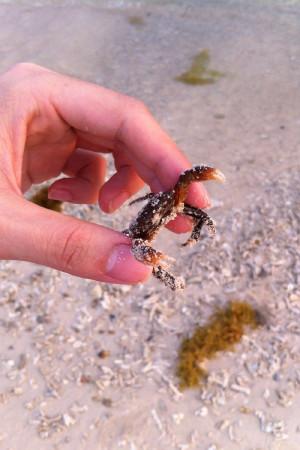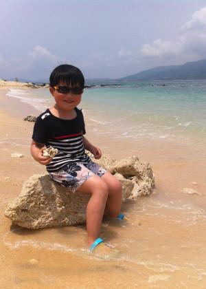 坐车回来半路请司机把我们放下,趁最后无人时刻再走一走沙滩,好多螃蟹和贝壳,有小的,有大的。躲在石头下面也被我发现,以后要藏藏好,不要再被我找到咯。快点回家吧!天天都很happy!