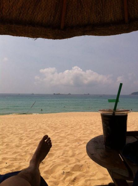 今天就要离开亚龙湾,去蜈支洲岛,说真的没待够。吹着海风躺在躺椅的感觉,让天天坐在钢筋水泥办公室的人不想离开。