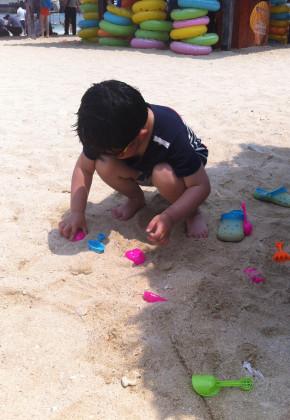 下午就海滩玩玩,沙子又细又软是这段旅程中最好的,小朋友把自己埋起来,笑得好开心,已经晒得黑黑的了。。