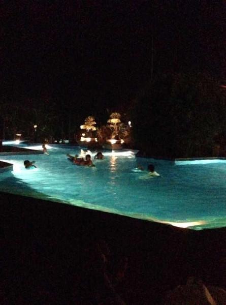晚上了还不准备放过老爸我,拖着我去夜游。好吧,这几天明显吃多了,晚上去泳池消耗一点