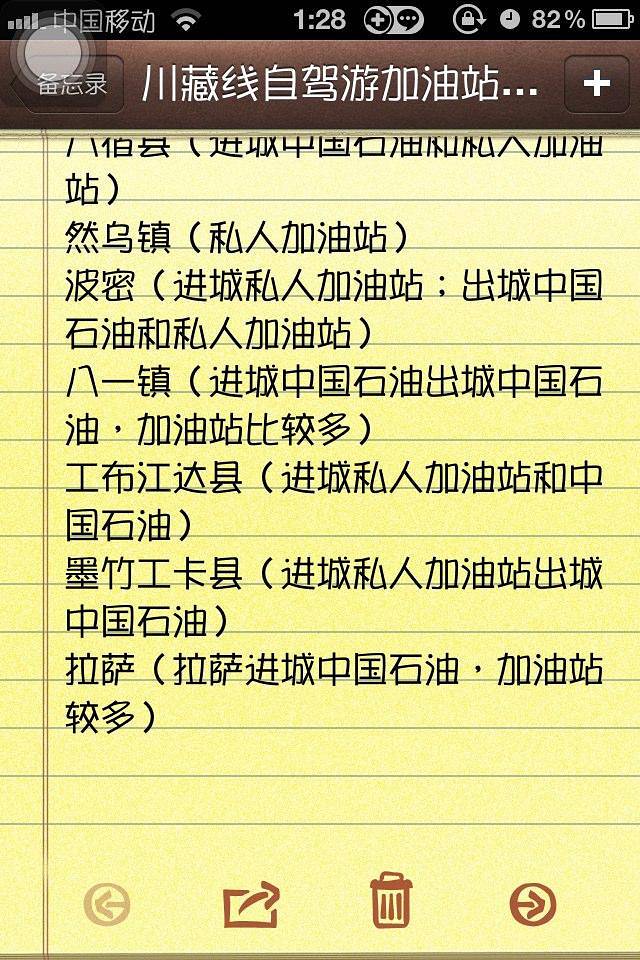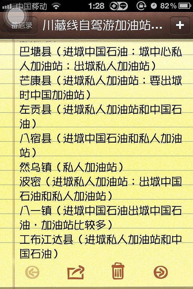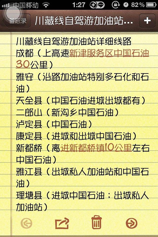走318国道主要交通工具是汽车,自驾,所以对路上的油站也有做统计的功课。