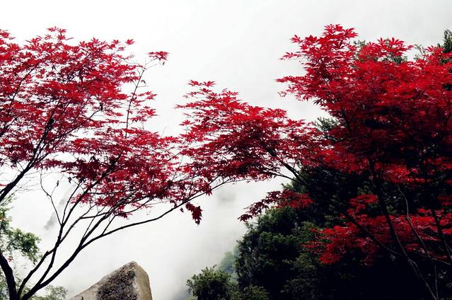 前往海螺沟缆车平台的盘山路上,美丽的一抹红