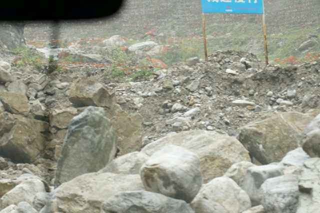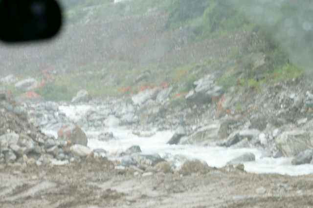 离开海螺沟,经过红石滩,前往新都桥,一路都是泥泞碎石山道。