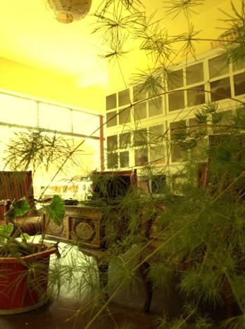 客栈的客厅有一个很大的阳光房,阳光房里还别致的摆放着沙发和茶几,以及一个很大的书架,上面摆放了很多种类的书籍。一到这里,就知道这里是我很喜欢的地方。目前是出于夕阳西下的时候,夕阳的余晖照在这里,让整个阳光房里镀上了一层金色的外衣,让我不禁停留在这里不想出去了。便坐在沙发上随手拿起一本书就来看了起来,这种时光真是宁静而又美好。正看书到入迷的时候,听到朋友在楼下叫我,原来是到吃饭的时间了呢。看书的时间过的真的好快,原来都已经天黑了呢。真是不舍得离开这个美丽的小世界。