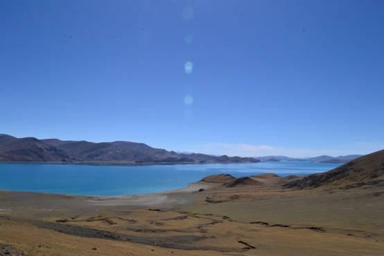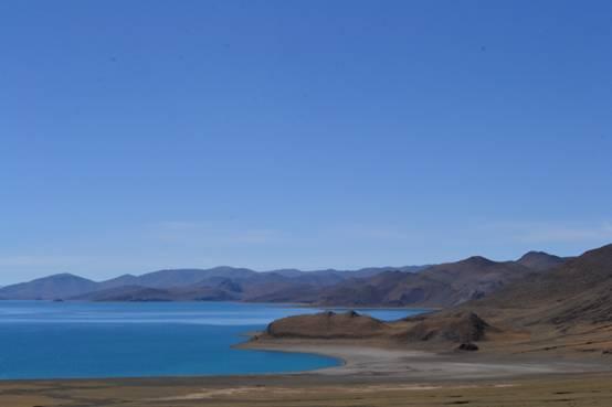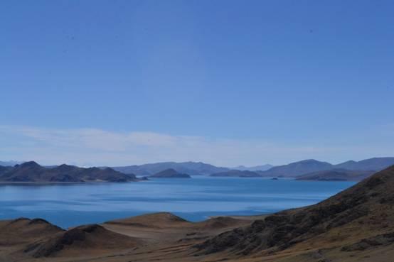 站在羊湖边上,神奇的湖水,那个纯净的可以听到自己心声的地方,站立湖边,万籁寂静,心中变得如湖水般清澈。我终于知道为什么羊湖被誉为是世界上最美丽的水了。虽然说与纳木措、玛旁雍措并称西藏三大圣湖,但是她的惊艳远超纳木错和玛旁雍错。,羊湖在藏人心目当中被看做是“神女散落的绿松石耳坠”,那碧蓝的湖面果真就如其名,像一块碧玉镶嵌在群山之中,摄人心魄,太美了。它是是一个无论远望还是近观都让人心旷神怡的地方。无论你在哪个角度,都不能看到全貌。