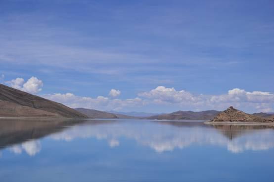卓雍措被誉为世界上最美丽的水。羊卓雍措,“羊”,上面;“卓”,牧场;“雍”,碧玉;“错”湖。连起来就是“上面牧场的碧玉之湖”。这是字面上对羊湖的解释,而羊湖在藏人心目当中被看做是“神女散落的绿松石耳坠”,因为无论你在那个角度,都不能看到羊卓的全貌,她有三个姐妹,空母错,沉错,巴久错,以即古羊卓雍错四姐妹在巨大的湖盆中,手足相连,难以割舍,共同组成了让我们肉眼看不到边的圣湖。她的身躯蜿蜒在群山中达一百三十多公里,只有在地图或是高空你才能惊喜的发现她犹如耳坠,镶嵌在山的耳轮之上。不同时刻阳光的照射,她会显现出层次极其丰富的蓝色,好似梦幻一般。