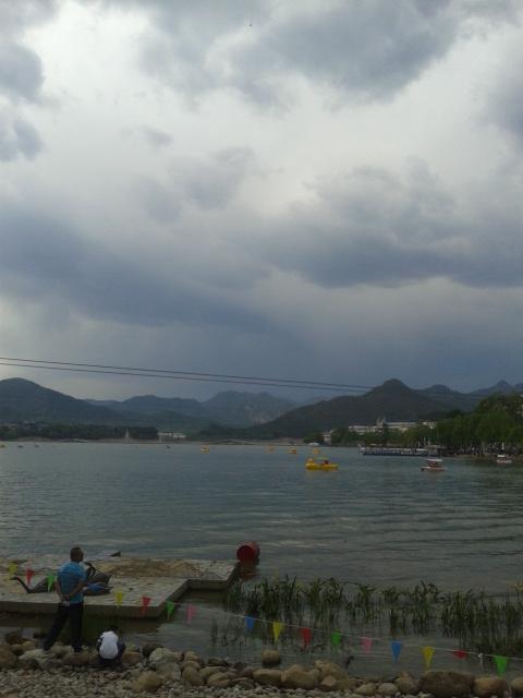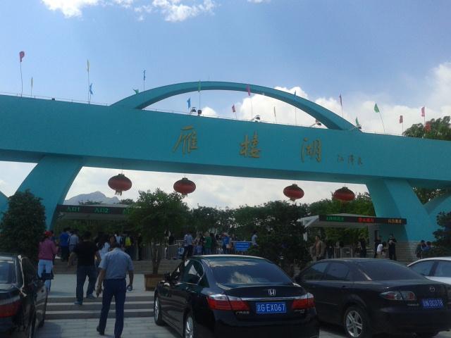 【雁栖湖正门】从936上下来对面就是,很好找,停车位也不少,虽然雁栖湖不是特别有名,但是五一去的人也挺多的,还是因为天朝人多呀。。关于雁栖湖我就不多做介绍了,听名字也知道是大雁栖息的湖泊。。我本打算在网上买门票的,网上的30,景点的34,但是手机网络太慢就作罢了。现在真心感觉不值这个价。雁栖湖里面了,挺小的,感觉还不如市区的一个公园大,更何况市区的公园还不收门票。。里面大部分都是水上娱乐项目,但是由于当天有风,小船之类的不稳,所以都不让划船。搞笑的是湖中间停着一只山寨大黄鸭和一堆小黄鸭形状的船。。呼,我这是到哪了。。这是风小了游客划小黄鸭船呢。。