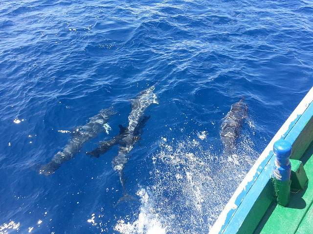 沿途有好多好多的海豚啊,一路追随着我们的船,哈哈,都说要有运气才能看到海豚哦,所以这个项目叫做“幸运看海豚”哈哈,($118/人含税)不错不错,人品爆发啦~