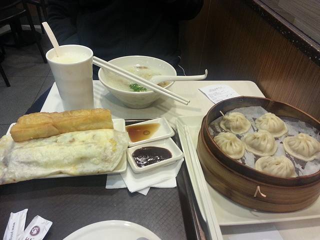 清晨5点多抵达上海,终于吃了顿中式早餐~豆浆油条小笼包皮蛋瘦肉粥,老公相当满足!