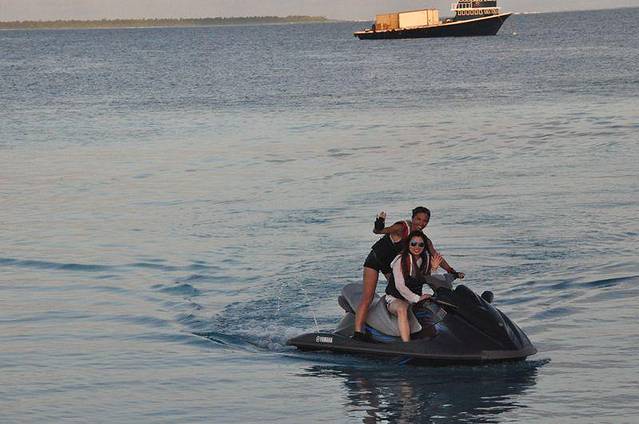 因为昨天浮潜晒伤了,所以取消了今天跟管家的外出浮潜活动,就昨儿上午晒了2小时,下午就全红了,之后就奇痒无比啊~ 香蕉船的芦荟胶擦的不停,可惜,哎。。。早餐用餐完毕,就近去了浮潜中心那边的沙滩捡贝壳~ 顺便预约了下午5点的摩托艇,150美金哦~贵的撒~ 老公玩儿过的,所以只给我一个人报了名,然后一个劲在旁边说抓牢就行了,弄的我好紧张。。。