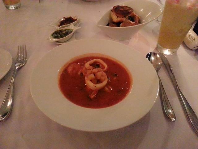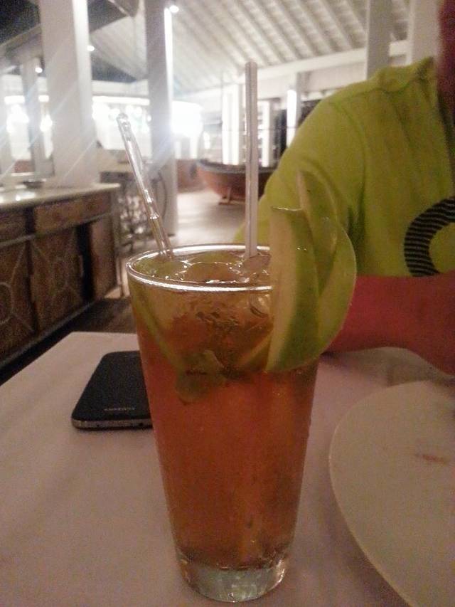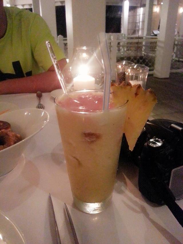 地中海餐厅的烛光晚餐,每人10美金即可,饮料另收费~ 说来也巧了,烛光晚餐是蜜月赠送的,但也是要提前预约的,可我们只看到房间里有一张单子上写的提供亚洲餐厅的烛光晚餐,但那个太难吃了,而且今晚亚洲餐厅不营业,所以昨晚在亚洲餐厅的时候我们就问了工作人员,刚好接待我们的是前一天在地中海餐厅吃饭见过的那个帅哥,呵呵,就这样,帅哥说他们那边也可以提供烛光晚餐,所以我们跟他预约了一下,临走前的今晚就来啦~ 岛上的西餐比中餐好吃多了~