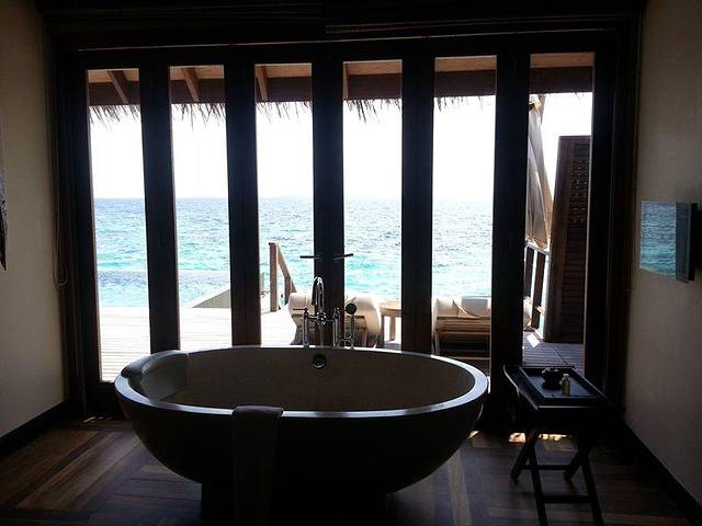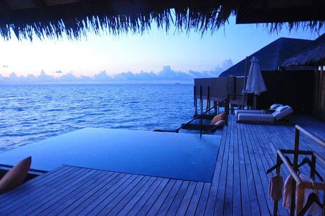 选岛,相信有些朋友会很纠结,因为100多个岛各有各的特色,实在让人难以取舍,我呢也是如此,纠结了好久,但在综合比较之后选了一个性价比很不错的岛,马代最南端、一个美丽的六星岛屿——Ayada!最后想想其实我选岛也简单,对交通、浮潜级别没有限制,有中文服务更好,但是我对房型有要求,正巧有一天在淘宝上看到一张照片(下图)是Ayada的水屋,我就认定了Ayada,而且就要那个房型——日落海洋套房!