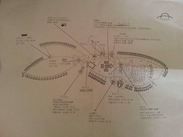岛上有4家餐厅,玛古主餐厅(提供免费的早晚自助餐),泳池酒吧只提供午餐,地中海餐厅、亚洲餐厅有午餐和晚餐,附上一张地图供大家参考!超实用的地图,还标注了每个餐厅周几休息。
