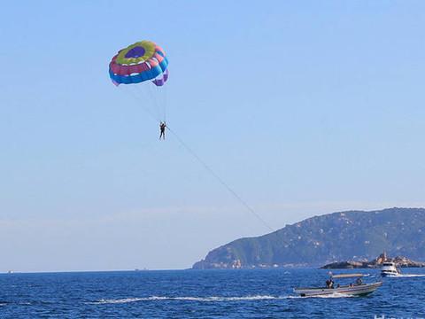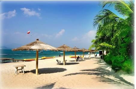 偶尔会有些游人来这里游乐区内玩潜水、玩高空伞和游泳。大都玩得很尽情,脸上的笑容就是最好的证明。累了,也渴了,可我不想喝水。我想吃的,是三亚的特色水果。所以,我就近买了几个热带水果,有芒果、有椰子,也有杨桃。吃不完就留着晚上吃,反正不贵,味道又甜。