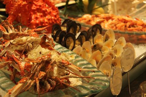 都说三亚的海鲜特多,又新鲜又好吃。所以,晚上,我同样去找三亚的各种小吃。功夫不负有心人呀,在网上搜搜,在路上问问,打个小的,就到了有名的海鲜街了。那就是--春园海鲜广场,一个早已被越来越多的网友所熟悉已经成为自助旅游享用三亚海鲜的首选之地。所以,我也不例外,先是去了第一市场精心挑选好了自己要吃的海鲜,然后去市场后面的加工一条街给店家加工。还别说,这些的海鲜种类特别多,可以说是琳琅满天目,任君挑选。如海胆、带子、鲍鱼、龙虾、生蚝、象拔蚌等等,海鲜丰富而齐全。当然,也多得三亚的湛蓝海水造就了它天然肥美的各种海鲜。如我点的这些和乐蟹,海南著名传统名菜之一,产于海南万宁县和乐镇一带海域。膏满肉肥为其他蟹种所不及,特别其脂膏,黄金油亮,香味扑鼻,营养丰富。