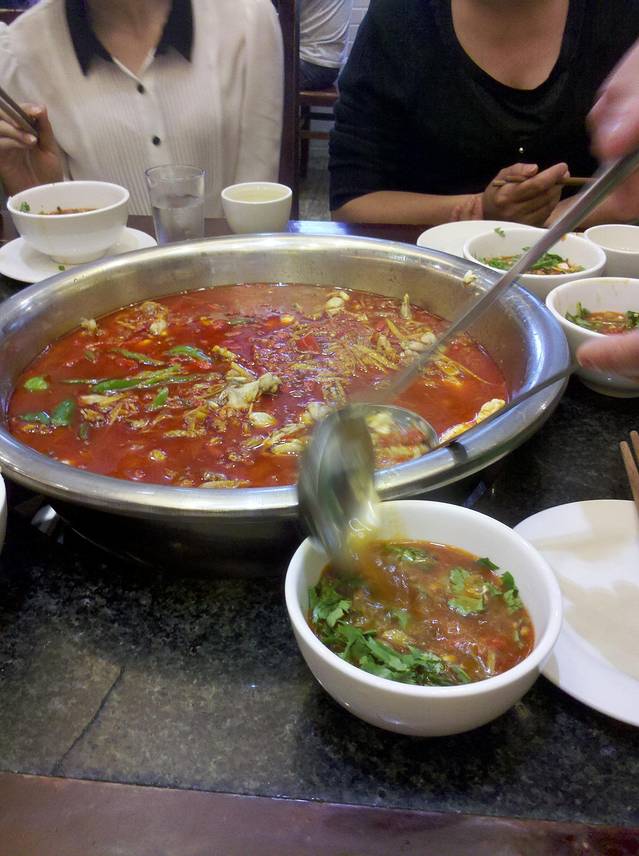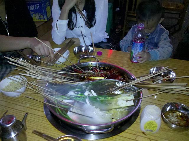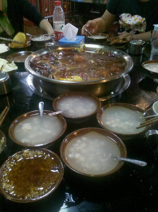 ¥390,四川大学西门旁,科华路,上次去吃的时候是8月,又热又辣,那种一头一脸汗的感觉实在是太爽了,这次吃要了中辣,天气也不是太热,所以没有上次的那种感觉,不够爽,其实可以要个超辣high一下,我们一个人平均可以吃掉一斤