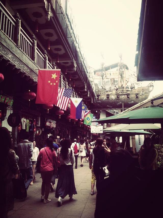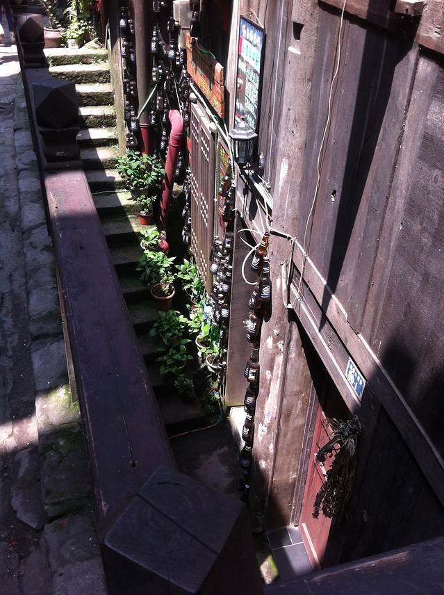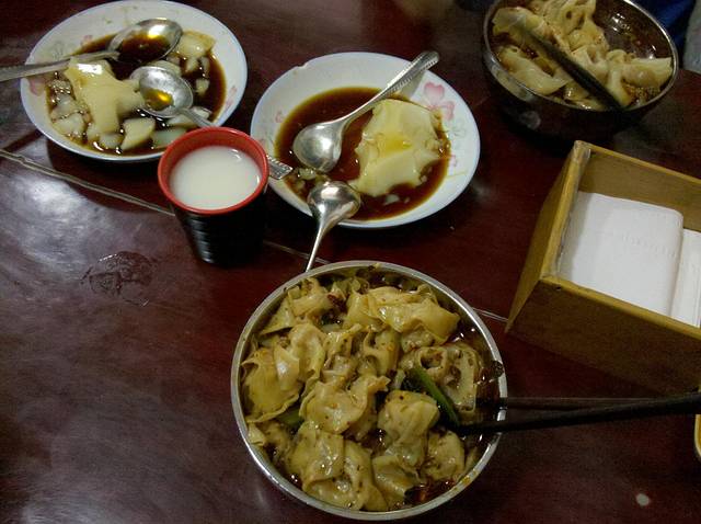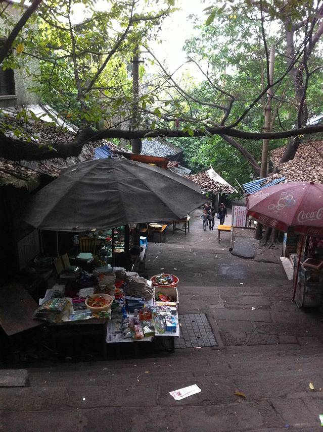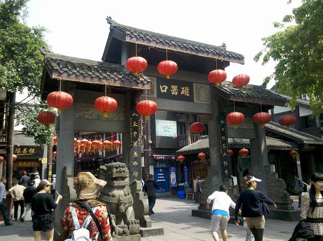 其实可以直接到磁器口吃早点的,有好多吃的。猪脚¥24,凉粉¥47,臭豆腐¥10,酸奶¥20。在一家小店里面买了一副太阳眼镜¥30,10元买了3把勺(好多式样,可以自己挑)。