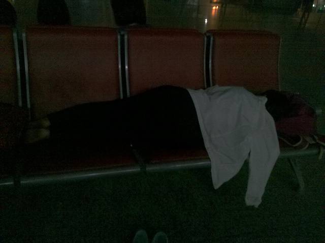 到如家拿行李准备走的时候突然下大雨,只能坐在大厅等雨小些再走,打的到机场¥58+59,晚上就在机场睡了一觉