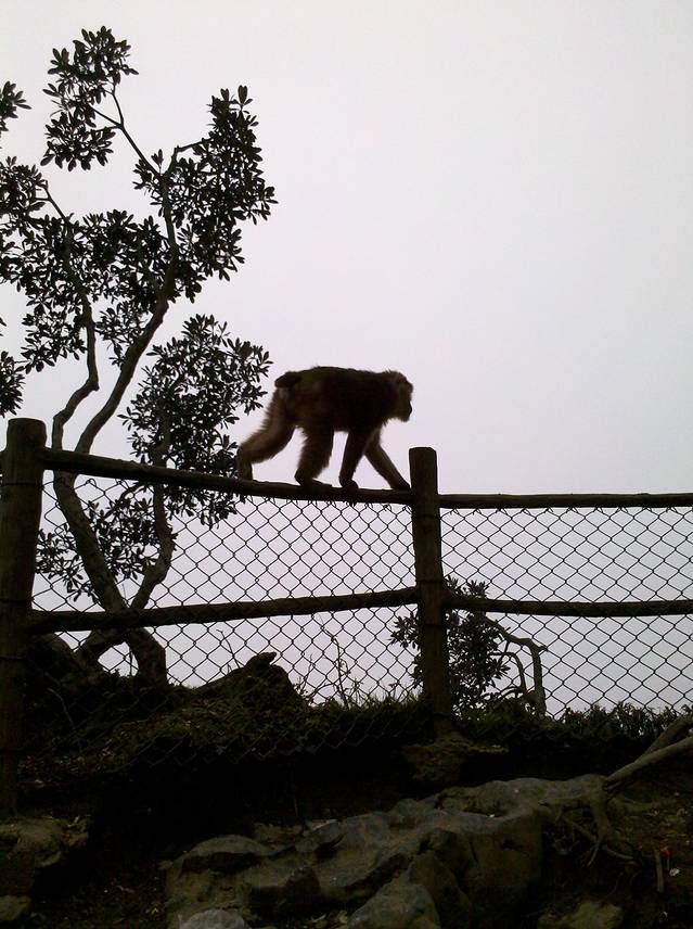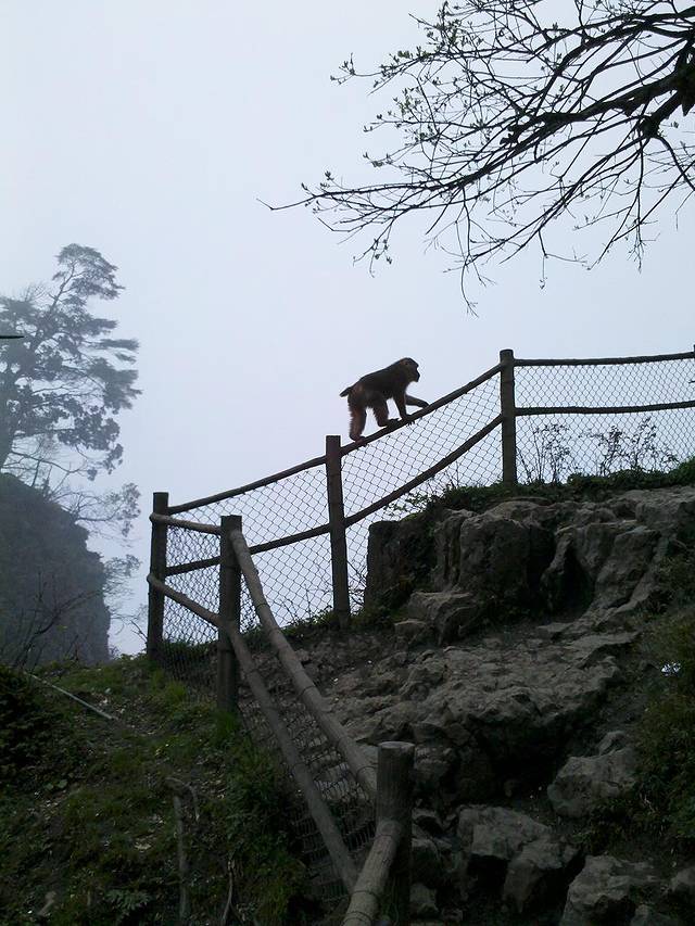 走到一半的时候跑来了两只猴子,很幸运