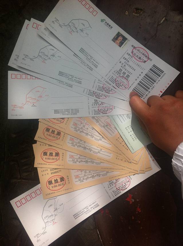 到游客中心买了到山顶的车票¥90/人,景点门票要上山买成人¥185,学生¥90。山路十八弯,要晕车的话最好买晕车药,好好在位子上坐着别乱动,不然会吐